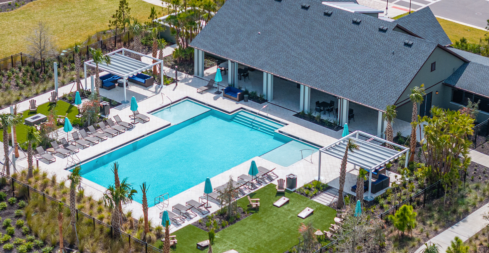 Oasis Amenities developed the community’s social and recreational hub at Two Rivers, creating a central destination for connection and leisure. The design features a resort-style pool, clubhouse, and versatile outdoor spaces that support both everyday activity and community gatherings.